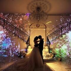 【演出人気NO.1】ゲストから歓声のあがるプロジェクションマッピング映像を体験!今までとは一味違う演出をしたい方必見!憧れの階段入場も体験出来て、結婚式のイメージもが湧きやすいと大好評!