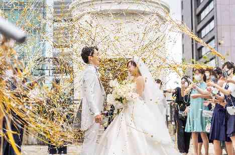 海外ウエディングのような華やかな演出がしたく、屋上では定番のフラワーシャワーの代わりに、スパイダーシャワーにDIYしたスターを混ぜてゲストに一斉にかけてもらいました。 また、ブーケトスは実用的に使って喜んで貰えるものをプレゼントしたく、コスメを混ぜたりと、ゲストにとっても新鮮で楽しい式になるよう心がけていました。