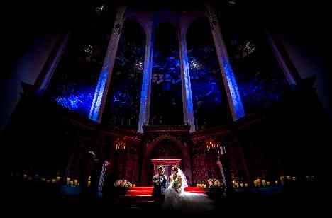 ステンドグラスが星空へ変わる演出