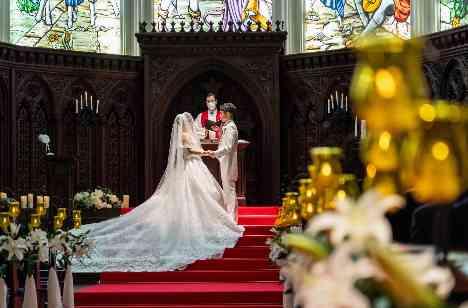昔から結婚式では真紅のバージンロードを歩きたい!という憧れがあり、それが叶った入場のシーンが特に印象に残っています。 両親には祭壇の両脇にある座席から、より近くで見守ってもらえたことも嬉しかったです。 生演奏の挙式音楽は、自分で曲目を選んだので思い入れがありましたが、大迫力でゲストからも好評でした。挙式後のガーデンセレモニーでは、ベルを鳴らすことができ、結婚式らしくて良かったなと思います。