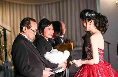 コロナ禍でなかなか思うように行事に参加できなかった新婦教え子たちに余興で踊ってもらい、当日は最高の笑顔で涙ありのパフォーマンスをしてくれ、とても嬉しかったです。 また、エンディングでは新郎のかねてからの希望で、両親にウェイトドールを贈呈しました。自分たちが生まれたときの重さのウェイトドールを両家母親がぎゅっと抱っこする姿に、私たちも大切に育ててもらったことを再実感し、嬉しい気持ちになりました。