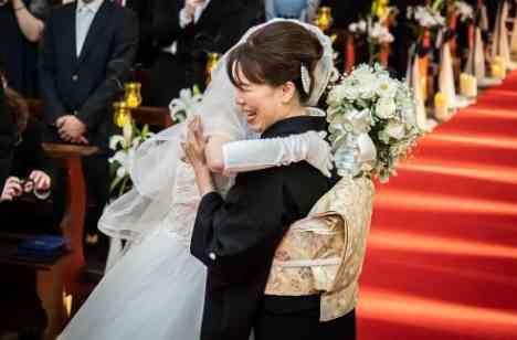 両親と3人でバージンロードを歩いたこと、そしてハグで今までありがとうの気持ちを伝えることができたのも、カサデアンジェラのハグ婚というコンセプトがあったからだと思っています。 愛犬むぎちゃんと旦那さんが一緒に入場できたこと。 だいすきなむぎちゃんも家族の一員なので、一緒に結婚式に参加できてとても嬉しかったです。