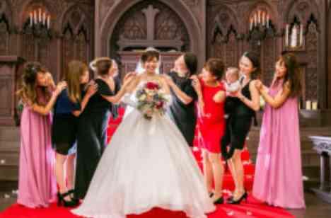 大切な人にウェディングドレス姿を初めて見せるファーストミート。ゲストみんなが沢山カメラを向けてくれる大聖堂でたくさんの笑顔と素敵な写真の思い出を・・・。長袖つき2WAYのウェディングドレスでスタイルチェンジ。大聖堂の生演奏の中行う感動挙式!