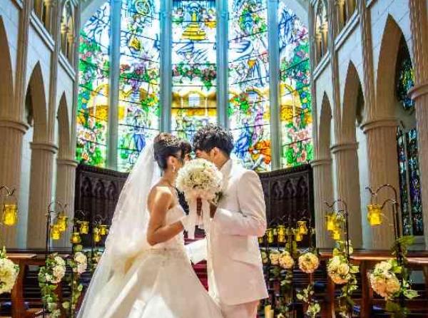 純白のウェディングドレスに身を包み大好きなお父様と歩くバージンロード。ずっとご新婦様の憧れだった瞬間を輝くステンドグラスと迫力のパイプオルガンの音色が感動的に演出しました。誰もが忘れすことのできない記憶に残る挙式となりました。