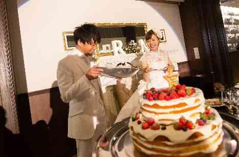 みんなが楽しめるような式にしたいという思いで演出を取り入れてたおふたり。オリジナルデザインのウェディングケーキは写真映えを意識しました。またゲストが思わずわあっ!と驚く超巨大ビックスプーンでファーストバイト。ゲストも大盛り上がりの演出となりました。