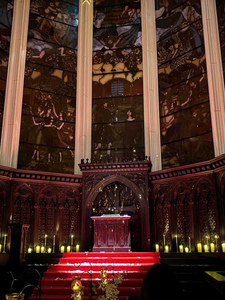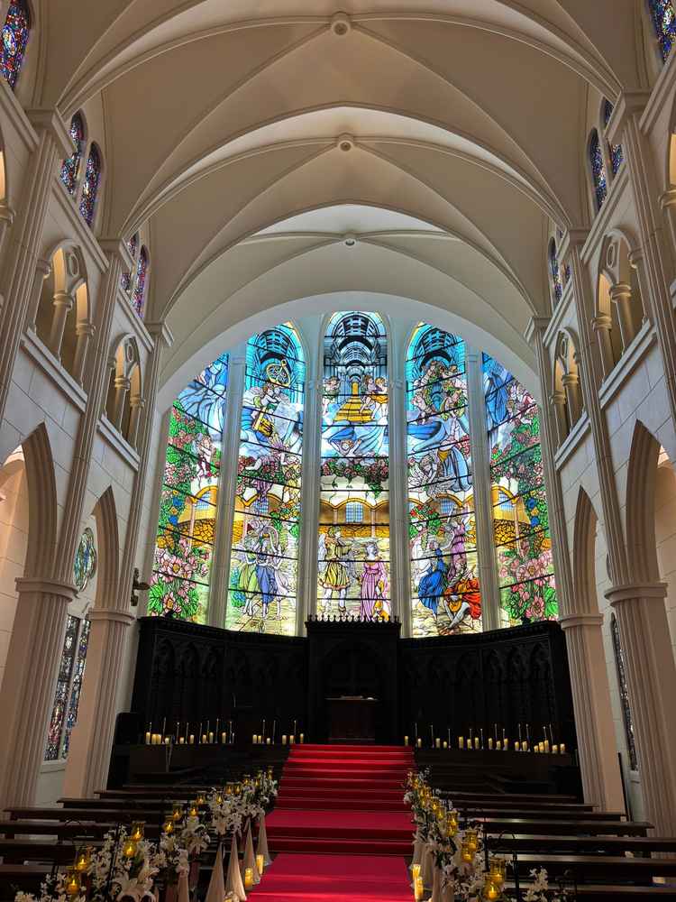 非常に綺麗でステンドグラスが特徴的なチャペルは魅力に感じたが、一方でチャペルが見事すぎて新郎新婦が霞そうだね…という話をパートナーとしていた。