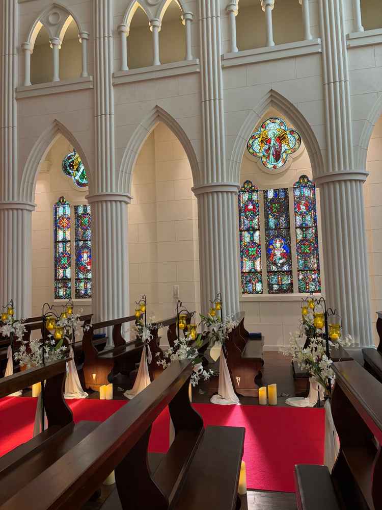 チャペルの照明が自分の好みの通りに変えられるというのが驚きました。 明るいのも暗いのもどちらも綺麗でした。 フロア貸切なので他の披露宴会場の人と会わずに済むのがいいなと思った。