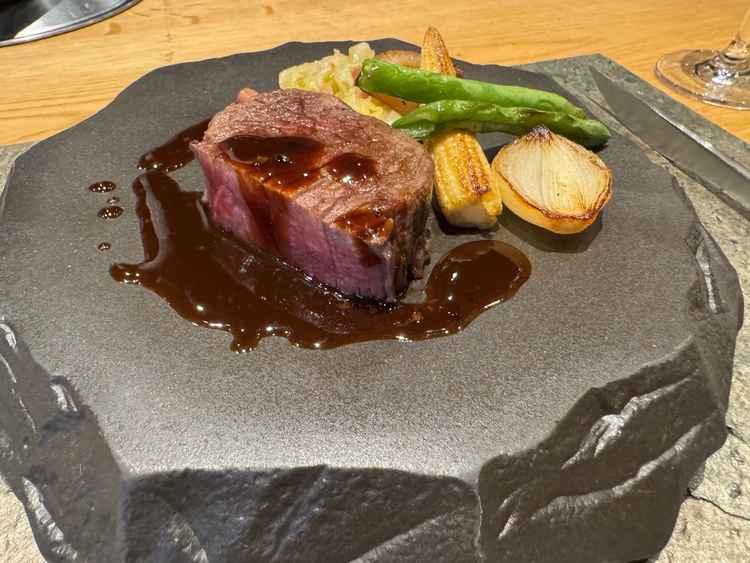 甘鯛とフィレ肉とケーキを目の前で調理いただきとても美味しかったです。