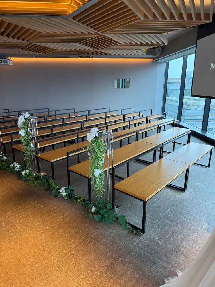 披露宴会場の雰囲気は和モダンで素晴らしかったが、チャペルのヴァージンロードが短く全体的に写真より狭く感じられたのが残念だった。