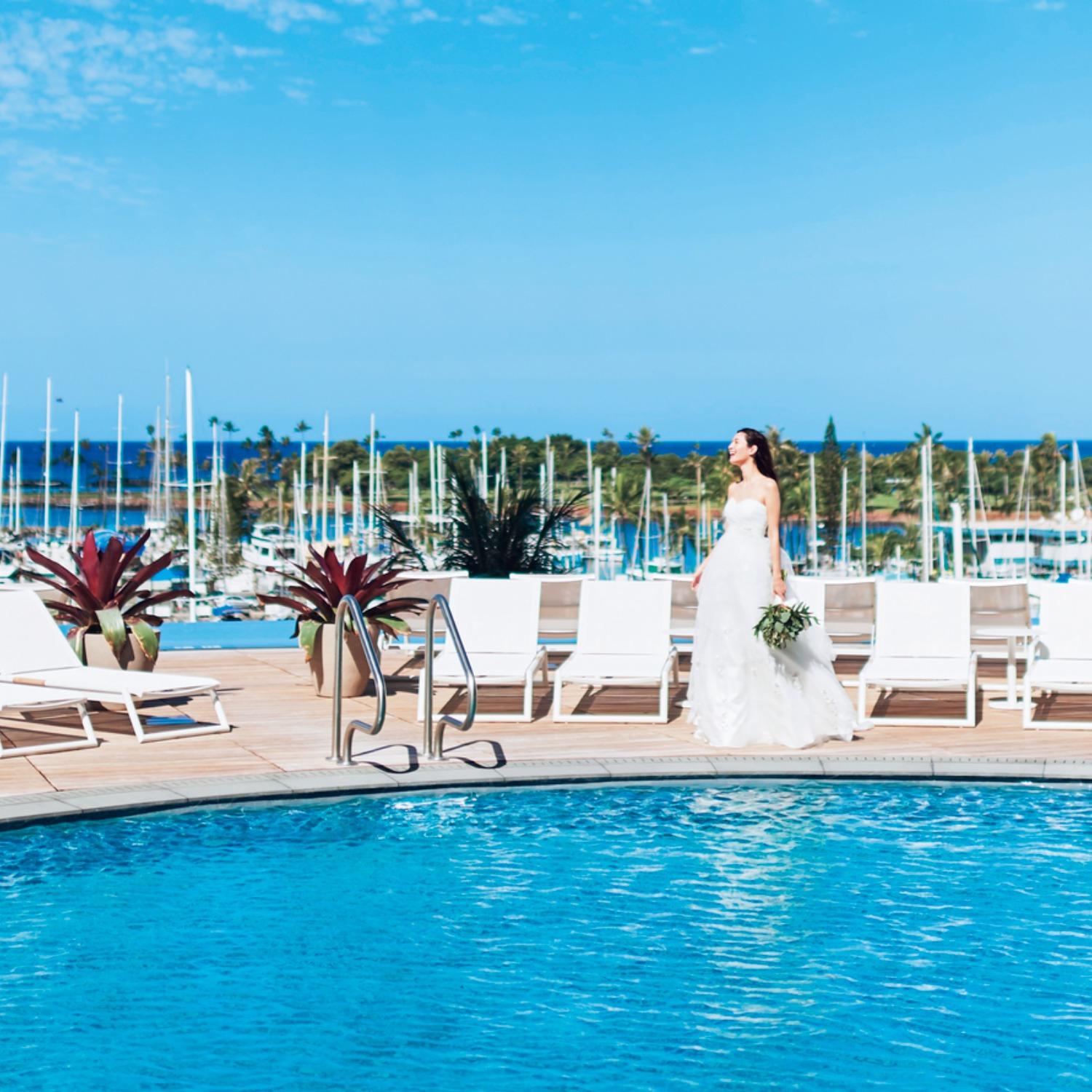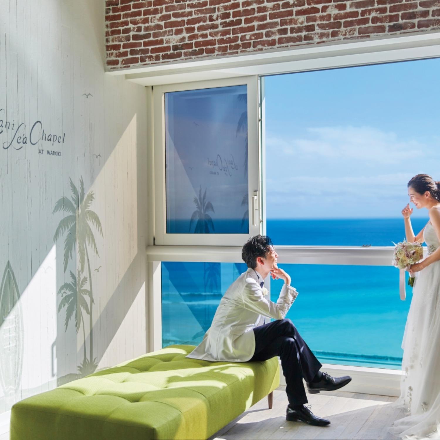 ハワイ語で“喜びの空”を意味する名を持つ「ラニレアチャペル」。目を奪うほどの雄大さをたたえた地上107mからの絶景が祝福する、おふたりのウェディングステイ。