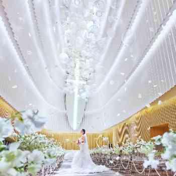 - 海と光に包まれる大聖堂。 上空から海底に差し込む自然光をイメージしたライティングが挙式を印象的に彩る