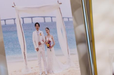 ノートルダムでの結婚式の前に、家族だけでリゾート挙式をされていたおふたり。 あたたかく海が綺麗な場所での挙式で、素敵なお写真を沢山撮られていました。 ノートルダムでのゲスト専用貸切ラウンジOCEANは、まさに海をモチーフにした雰囲気。 おふたりの素敵なお写真を飾るとさらに映えて素敵すぎました! (ノートルダムでは海外や神社での挙式後にパーティーのみも承っております)