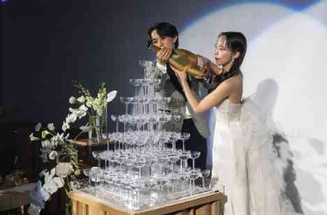 とにかくゲストが楽しめる&盛り上がるパーティーにしたいというリクエストのおふたり。 お酒が好きなゲストが沢山居らっしゃった事もあり、お酒を楽しく飲んでいただくために、スタートの乾杯はシャンパンタワーを実施する事に! ゲストの目の前でタワーにシャンパンを注ぎ入れるパフォーマンスは見た目も迫力満点でお写真映えも最高でした!!!
