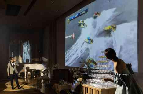 「おふたりらしくて盛り上がる演出はなんだろう」 「全員参加型のゲームとかどうかな」 「本気で参加してほしいよね」 「おふたらしいといったら…!!!」 という事で新郎様が大好きなボートレースを巨大スクリーンに上映するというシンプル且つ大胆なボートレースゲーム大会を開催。 ボートレース初挑戦のゲストが多かったため、新郎様の丁寧な解説&マイクパフォーマンス付き! 盛り上がりは最高潮でした★