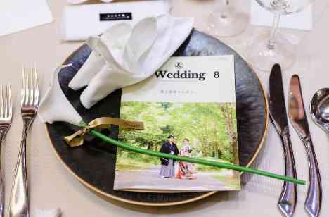 ペーパーアイテムは前撮り写真を使用して自作に。 当日は着用しない和装での前撮りの写真を使用できて大満足♪ ショープレートにはアンスリウムのお花を一輪。 お花にはゴールドのリボンを巻いてさらに洗練された雰囲気に。 色味を出し過ぎない事により、ゲストのドレスアップが映えるように。そしてお食事が映えるように。 とても素敵なテーブルコーディネートとなりました。