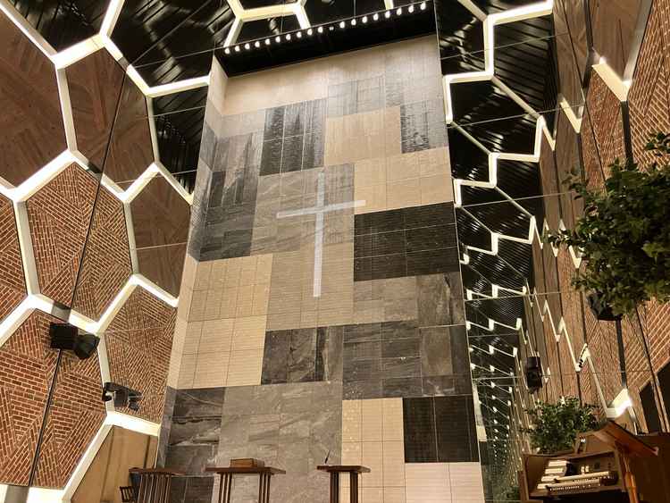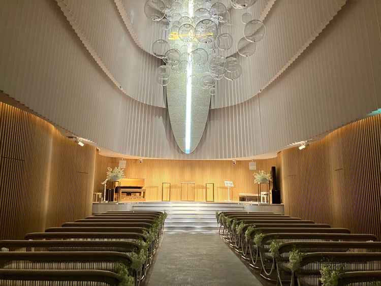 開放感的なチャペルと大迫力のスクリーン