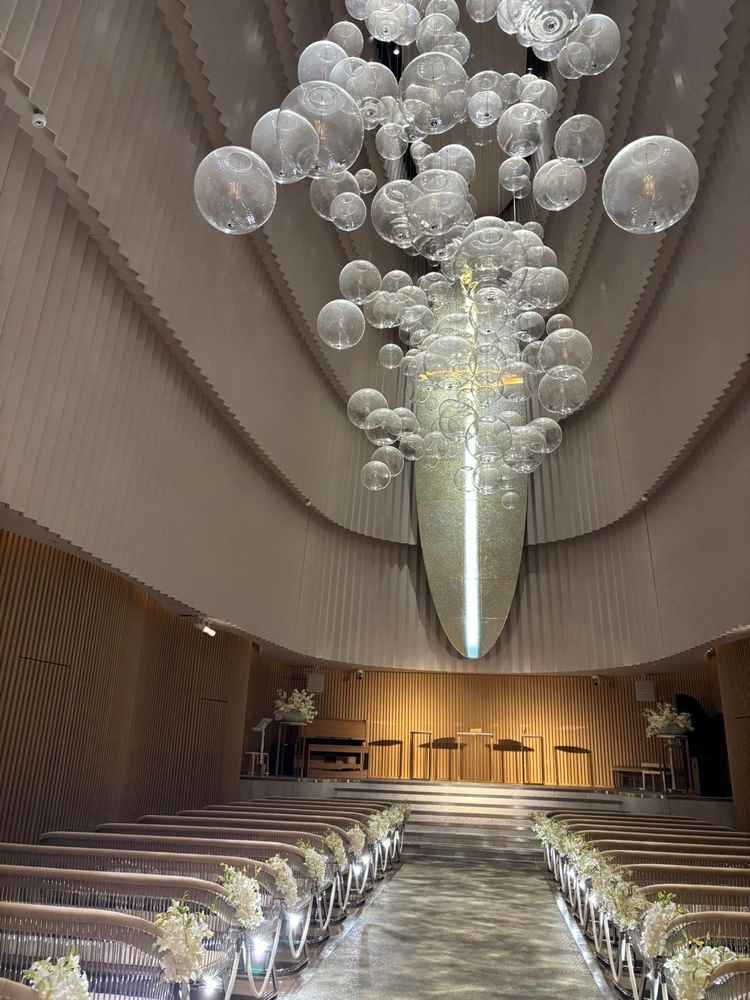 窓が大きく、そこから見える横浜の景観が非常にきれいでした。チャペルの入り口も景観の良さがいかされており、チャペルも写真で見るよりきれいでした。