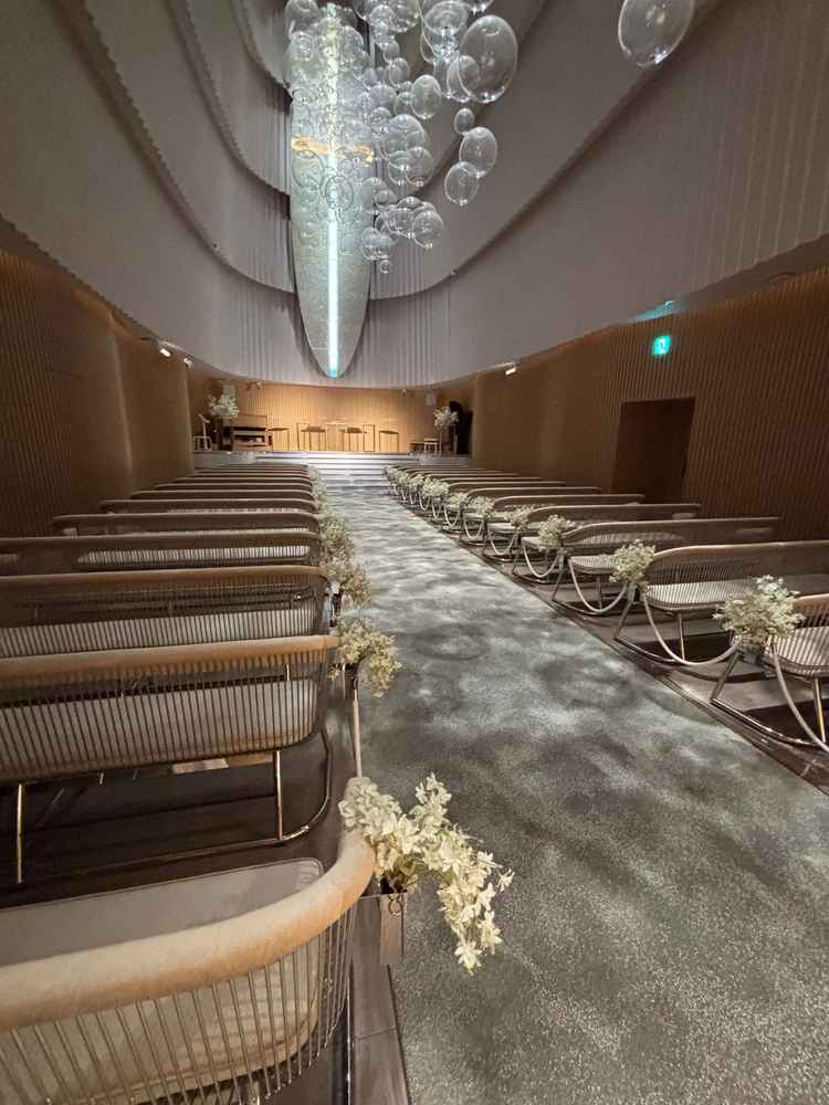 一般的な式場と異なり、チャペルだけでなくラウンジも含めて建物全体でシックな雰囲気があるのが素晴らしい。