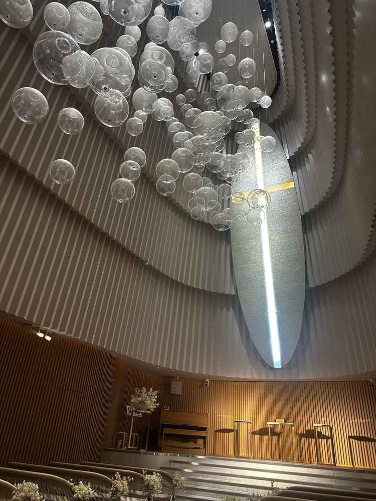 エレベーター三機、フロア内に喫煙室、チャペルからすぐ出たところに授乳室、女性ゲスト用のヘアセットスペースなど充実していました。
