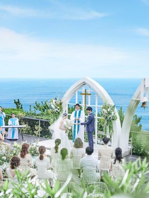 | 挙式スタイル | ◆教会式 ◆人前式 【相模湾を一望できるガーデンチャペル】 遮るもののないオーシャンビューがふたりとゲストをお出迎え。潮風を肌で感じられるオープンエアな空間に、ふたりを祝福する生演奏の音色が遠く海へ響き渡ります。 |