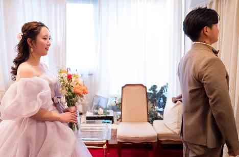 ご披露宴の中で衣装チェンジをしたあと、ゲストの皆様にお披露目する前に、まずは新郎様だけに見てもらうセカンドミート。ファーストミートと同じくらい人気で、カラードレス姿も新郎様にサプライズで見せたい!という方におすすめな演出です。ファーストミートのときとはまた違い、リラックスしたおふたりの表情を残すことができるのも魅力の一つ。