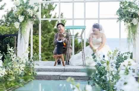 いよいよ迎える挙式の時間。大切なゲストの皆さまに見守られながら、おふたりらしさが光るあたたかな人前式が執り行われました。指輪の交換の際には、おふたりの大切なご家族の一員であるリングドッグのはっぴーくんが大活躍。小さな足取りで一生懸命にバージンロードを進む姿に、会場は一気に和やかな雰囲気に包まれ自然と笑顔があふれます。無事に指輪を届ける大役を果たし、ゲストからはあたたかな拍手が贈られました。