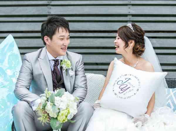 おふたりだけのオリジナルのロゴを手作りし、ペーパーアイテムに印刷したりウェディングケーキの飾りとして使ったり、オリジナルのクッションにそのロゴを使い、おふたりだけの特別な1日を演出し、より思い出深い結婚式となりました。