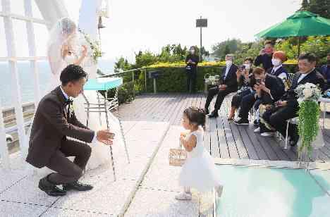 挙式は人前式のスタイルでアットホームに過ごせるように進行を考えました。 お父様と入場し、お母様にベールダウンをしていただき、 心温まるひとときとなりました。 そして、可愛いリングガールちゃんに大切な指輪を運んでいただきました。 皆様が笑顔になる挙式は記憶に残る特別な時間でした。