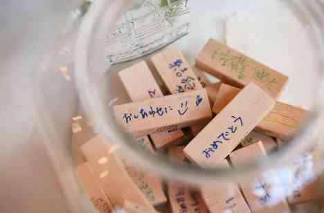 おふたりの好きなジェンガにゲストおひとりおひとりからのメッセージをいただきました。 お二人へのお祝いのメッセージや、お子様ゲストからも可愛いメッセージをいただきながら大切なジェンガが完成致しました。