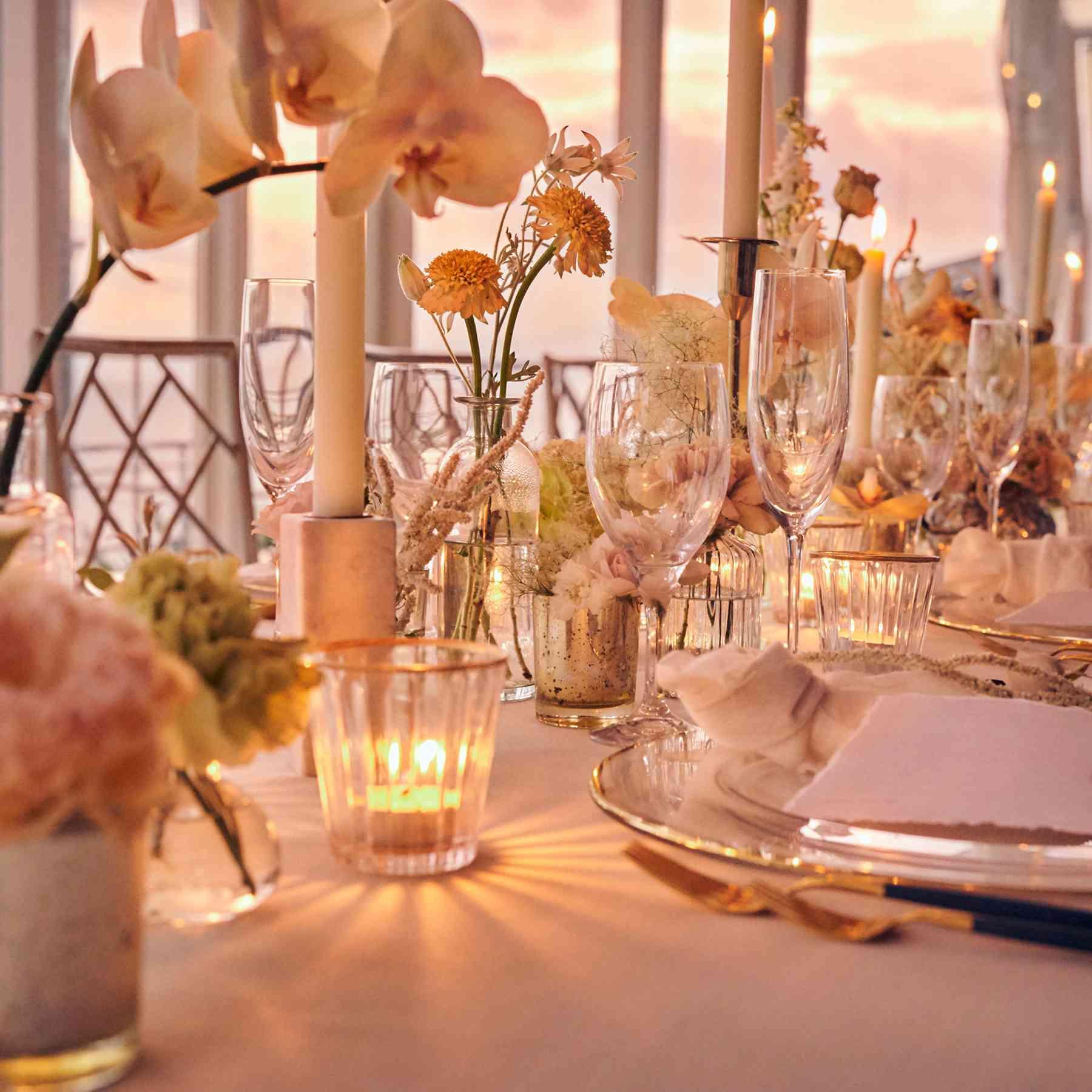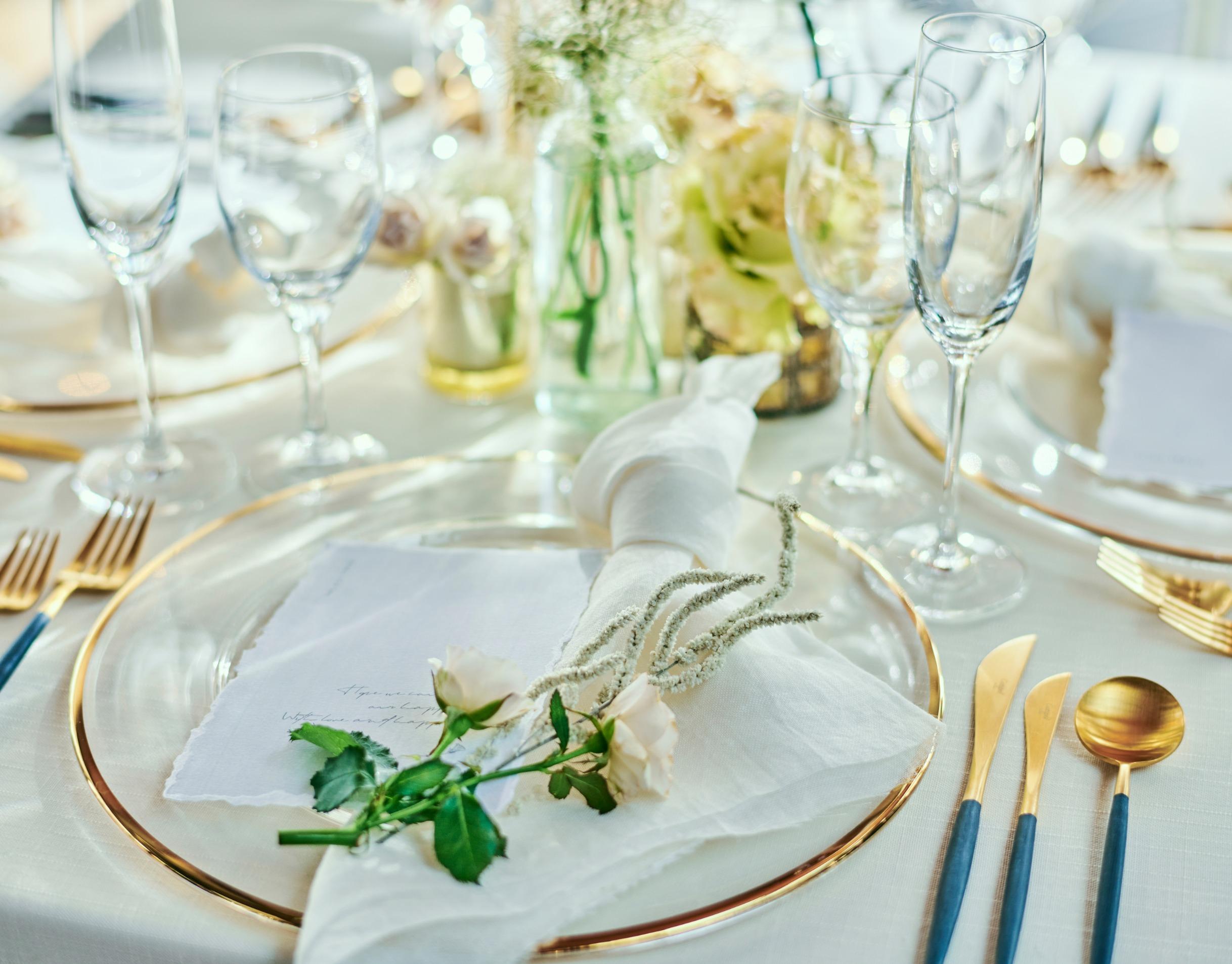 ゲストお一人おひとりへのおもてなしを考えたテーブルセッティング。カトラリー・キャンドル・卓上小物まで、多彩なラインナップをご用意。ご希望のイメージに合わせたこだわりのフラワーや卓上小物をご案内します。