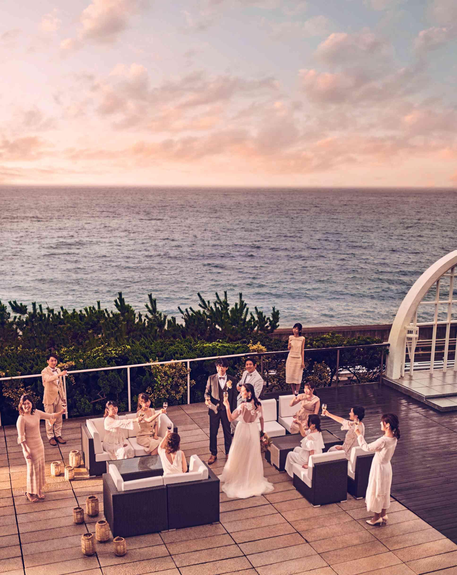 結婚式でのひと時を思い返すロマンチックな夕暮れ。1日貸切で過ごせるから、時間を気にすることなく自由に過ごすことができる。ゲストと過ごす上質なサンセットタイムを。