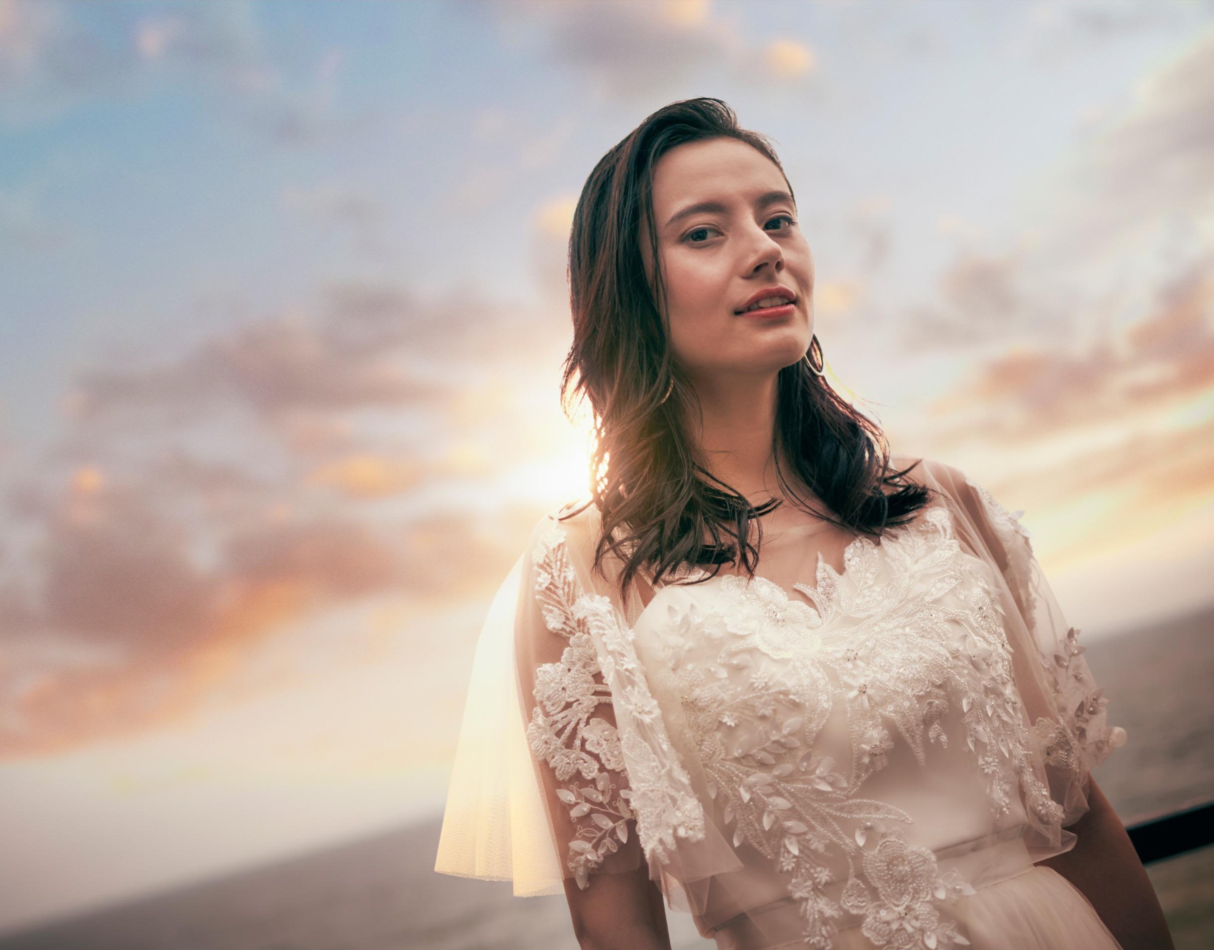 潮風、陽光に映える軽やかなドレスや、自然体で美しいシルエットを中心に衣装ラインナップをご用意。繊細なレースや柔らかな素材感にもこだわり、海と緑に溶け込む上品で洗練されたスタイリングが叶います。