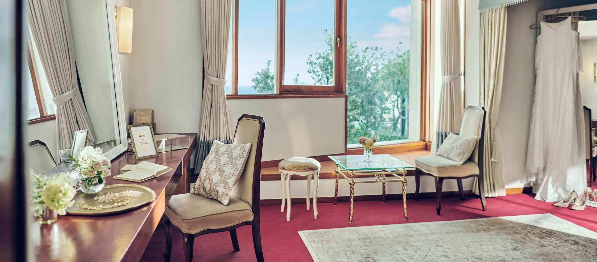 結婚式の当日、近くで聞こえる静かな波音が少しの緊張をほぐしてくれる。そよ風と自然の光を感じながら、当日の準備が始まります。1日1組だけの贅沢な貸切空間でゆったりお過ごしください。
