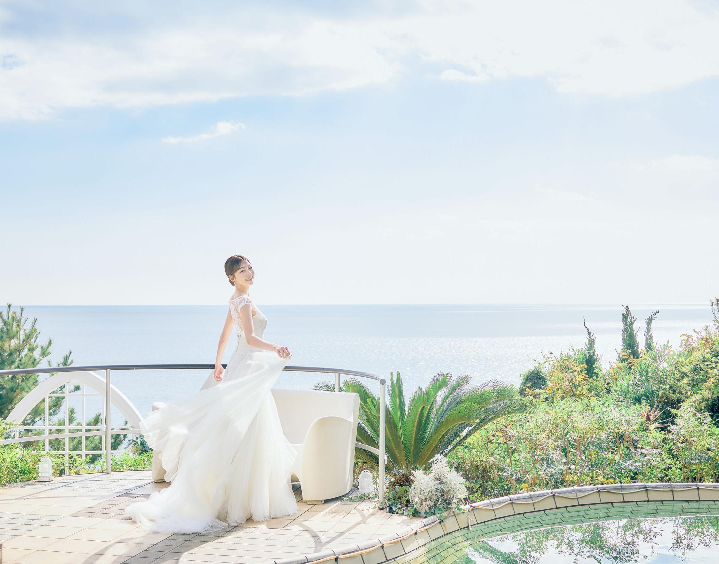 爽やかな潮風とどこまでも穏やかな波音がふたりの門出を祝福する。自然を近くに感じられる最高のロケーションで、理想のウェディングフォトが叶います。前撮り・後撮りなど、お気軽にお問い合わせください。