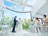 目の前に広がる空と緑が、まるでガーデンにいるような心地にさせてくれる一面ガラス張りのチャペル。みんなに見守られる挙式やテラスでのバルーンリリースなど、楽しみ方は自由自在!