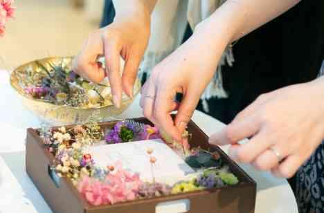 今までおふたりがお世話になった大切なゲストへ感謝の気持ちを伝えたい!!それにはゲストに楽しんで過ごしてもらうことが一番かなとご準備を進めてこられたおふたりです。 食べることも大好きなおふたりは試食会にも参加し、 お料理もカスタマイズしながらオリジナルメニューにされました。 受付ではBOXをご用意し、ゲストの皆様にドライフラワーで飾っていただき、人前式で証明書として使用されました。