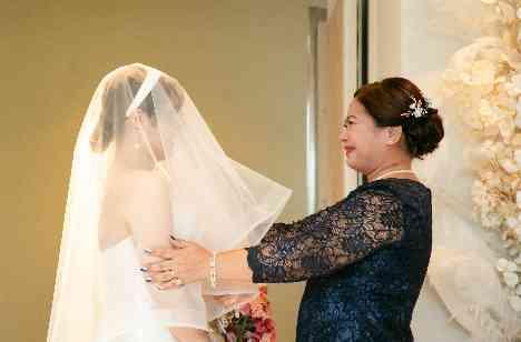 今は行う方も多くなった挙式の中での花嫁の最後のお支度”ベールダウン”のシーン。今まで大切に育てていただいたお母様から花嫁となる娘さんへ餞の言葉を添えて送り出していただくお時間はとても心温まるシーンとなりました。ご新婦さまにとってもお母様とのおふたりだけのかけがえのない想い出のお時間になったのではないでしょうか。