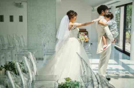 おふたりにとって大切な1日…。 チャペルでのファーストミートから始まります。 ファーストミートとは、挙式前にそれぞれのお部屋でお支度を整えた後、お互いの姿を初めて見せるというもの。 お子様は新郎様に抱っこをされながら新婦様を待ちます…♡ 新郎様の肩をたたいて振り返った瞬間、家族3人の笑顔が溢れました。