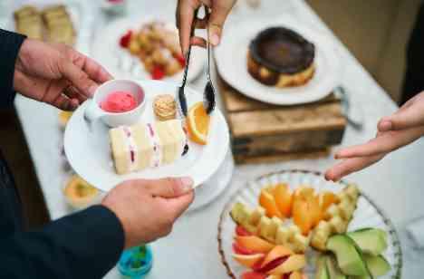 お色直しはボルドーのカラードレスにて入場された新婦様♡ ウェディングドレスの雰囲気からガラッと変わり大人っぽい印象でした♡ パーティもいよいよ後半となり、おふたりからゲストの皆様へデザートビュッフェのおもてなし。 専属パティシエが作るデザートで、ルシェルブランではとても人気な演出です! ゲスト様にもお喜びいただきアットホームなパーティとなりました。