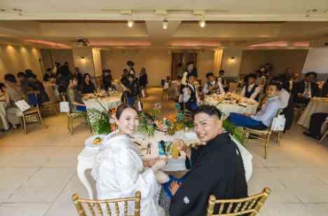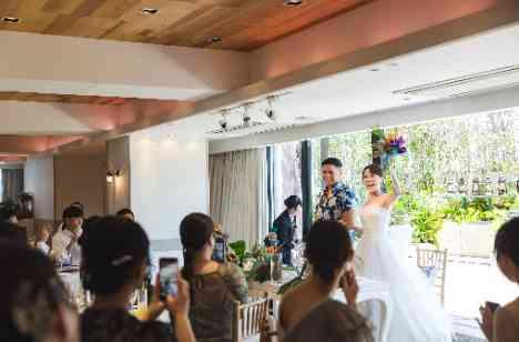 会場コーディネートはおふたりのテーマにピッタリの南国をイメージしました。 新婦様の夏らしさを感じられるブーケと合わせた会場装花もとても素敵です♡ パーティのはじまりはガーデンから入場したおふたりですが、新郎様はなんとアロハシャツで登場! 想像していなかった新郎様のご衣装にゲスト様も大盛り上がり! 大切なゲスト様に囲まれ、終始和やかなパーティとなりました。