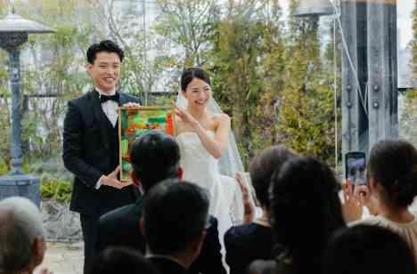 挙式では指輪を運んでもらう「リングボーイ&ガール」をお子様と姪っ子ちゃんへお願いしました。 お届けいただいた後には指輪の交換、家族3人での「ファミリーキス」。 セレモニーではゲスト参加型のウェディングキャンバスをおこないました。 世界でたったひとつのゲストと創り上げる結婚証明書は一生の思い出と宝物。 ゲストの皆様との絆がより深まった温かい挙式となりました。