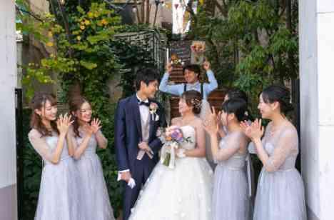 結婚式でお願いしたブライズメイド。結婚式が始まる前にみんなで写真撮影♪ ご友人の方々と楽しいひと時をお過ごしになりました。 ルシェルブランでは挙式・パーティの開始時間からお二人のご相談ができるからこそ「やりたいこと」を叶えました。