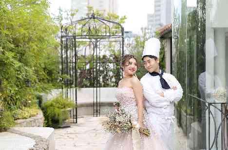 新郎自らコック服に着替え、コース料理のメインのお肉をゲストの目の前でフランベ★ゲストからは「凄い」と歓声が沸き上がり、パーティの中で1番の盛り上がりとなりました。