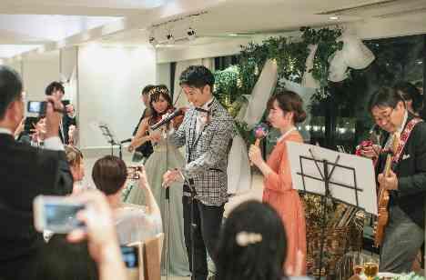 おふたりとご家族で、家族バンドを行いました!皆様との距離が近いからこそ、ゲストに見守られながらの演奏でご両家が1つになる瞬間は、思わず笑顔になるような感動のシーンでした。演奏後は会場中があたたかい拍手で包まれました♪