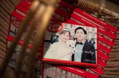 パーティの最後には、おふたりのお写真が入ったプチギフトをお渡ししながらお見送りをしました。本日の記念になる素敵なプチギフトは、ゲストの方々からも「食べるのがもったいない!」との嬉しいお言葉を沢山頂いていました。