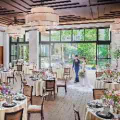 【緑を感じるパーティ会場】ガーデンから一続きになるパーティ会場は、常に目線の先には緑があり、たっぷりの自然光が入ってくるので装飾に頼らなくても上質な空間に。リラックスして過ごせるのも貸切邸宅の魅力。