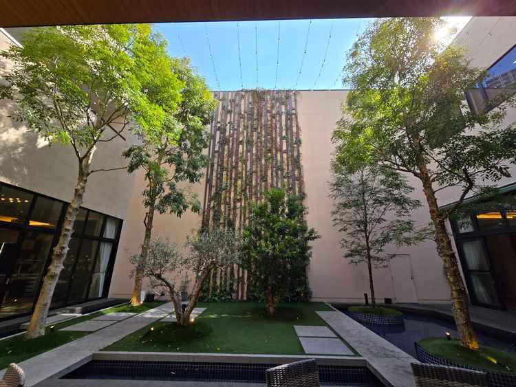 雨天時にも中庭のオーニングテントを出して対応できたり、親族の控室や待合室など基本的な設備が整っていた。