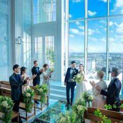 駅直結のスカイチャペルを体験★チャペル専用に2フロア分を贅沢に使用した天井高は開放感抜群!神聖な雰囲気とナチュラルな雰囲気が合わさり温かみのある挙式が叶えられる。参列ゲストからも大好評で写真映えも◎