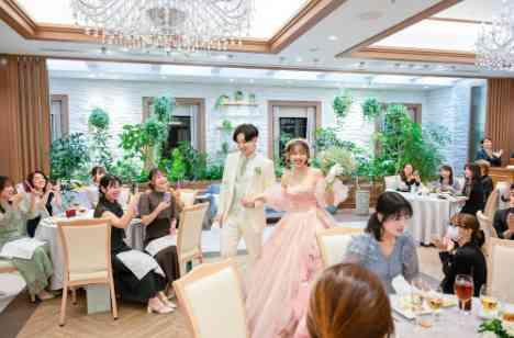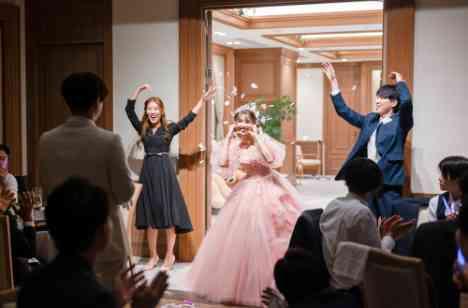 堅苦しくなく気軽に会話が弾むパーティをご希望のおふたり。 披露宴中にご友人スピーチやサンクスバイト等を取り入れ、ゲストが披露宴にご参加できる進行にされました。お色直し入場後は、受付で行ったクイズの正解発表やプレゼントのお渡しをされ、ゲスト様と近い距離で過ごせるアットホームなパーティを楽しまれました!