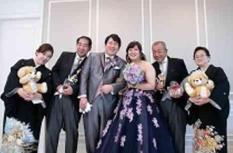 みんなで楽しく♪面白く♪お打ち合わせ当初から親御様への感謝の気持ちをお伝えしたいとお話しされていたお二人。 感謝の想いを伝えながらも少し面白くしたいと親御様への記念品を一生懸命探してくださり、お父様にはトロフィーをお母様にはウェイトベアーをお渡しされました♡ご両家様で「はい!チーズ!」素敵な1枚いただきました♡